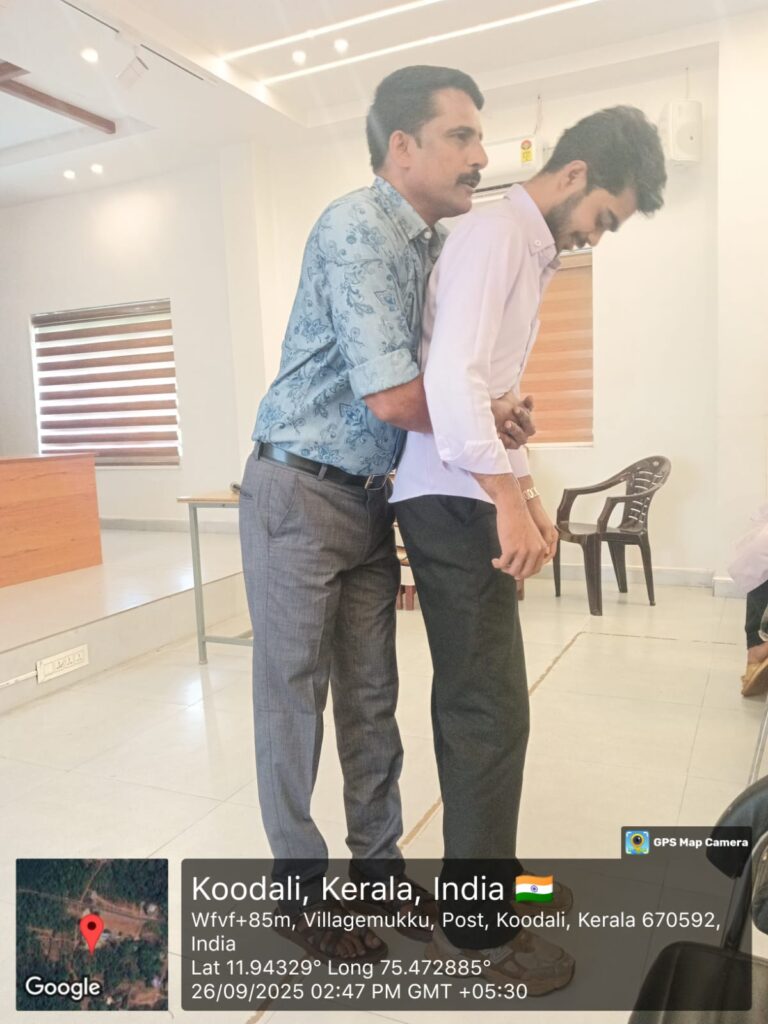The second program, conducted on September 26, 2025, at 2:00 PM in the KSBC Conference Hall, focused on a First Aid Awareness session led by Brijith Sir. Sanjana led a warm and engaging welcome speech, introducing the resource persons and emphasizing the need for life-saving skills in school environments. Brijith Sir’s expertise in first aid was evident as he shared valuable insights and techniques with the students. He demonstrated various first aid procedures, including CPR and wound management, and encouraged students to ask questions and participate in discussions. The session concluded with a Q&A segment, where Brijith Sir addressed the students’ queries and provided additional guidance. The session included practical demonstrations and interactive discussions, making it both educational and empowering.