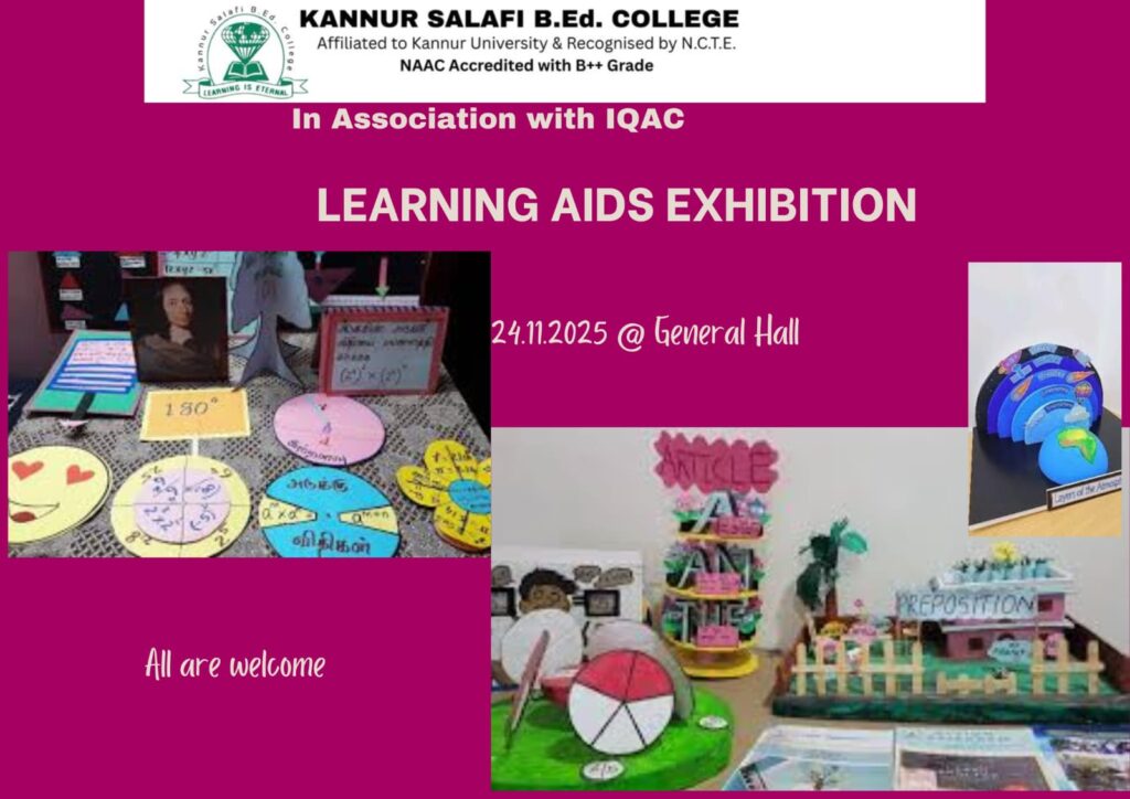 Kannur Salafi B.Ed College successfully organized a Learning Aid Workshop on 24 November 2025, showcasing the creativity and pedagogical skills of the teacher trainees. The workshop was conducted to impart hands-on experience in the preparation and effective use of teaching-learning materials for classroom instruction.